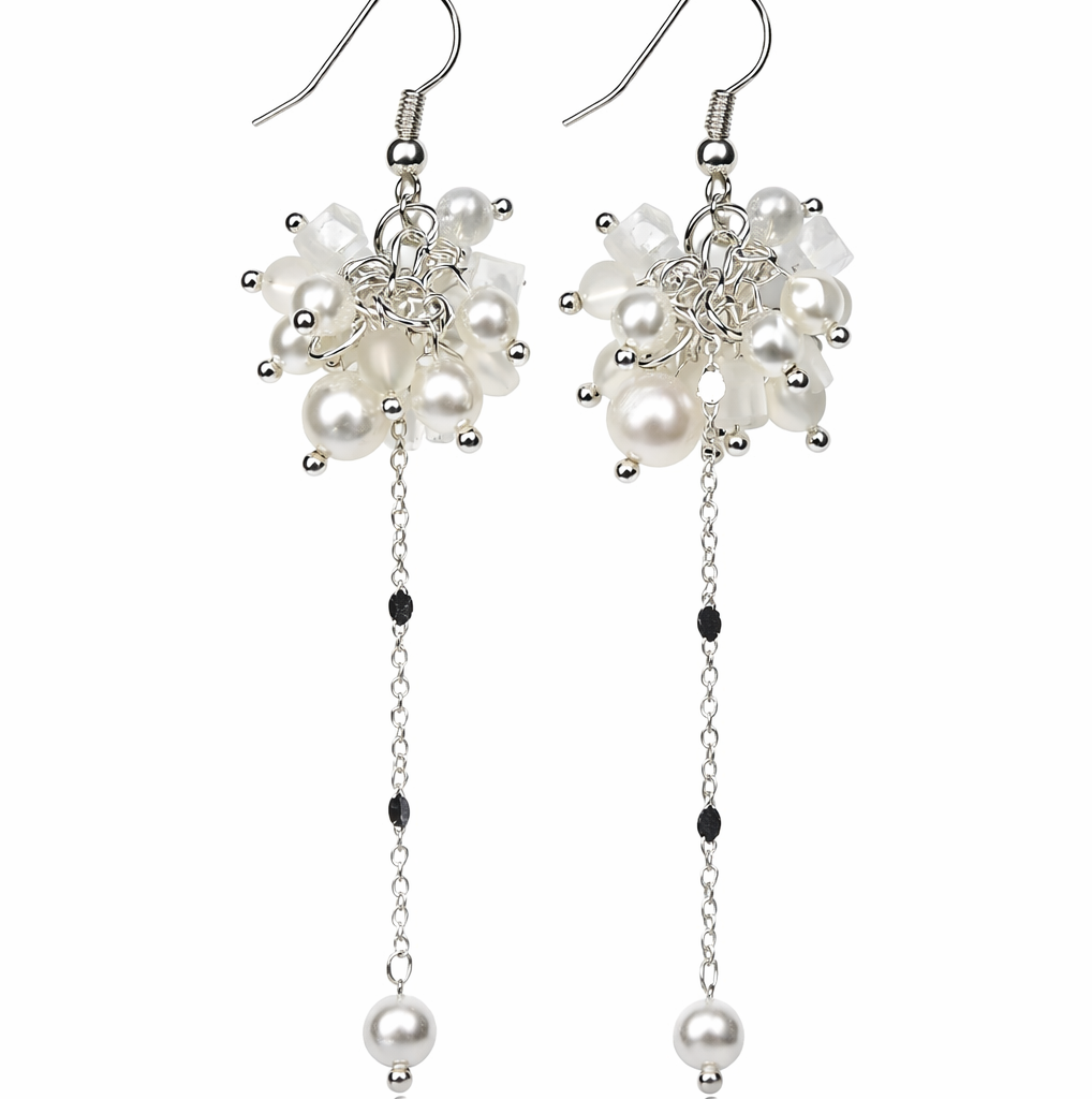 Edelstein Ohrringe - Soft Glow Essence - Bergkristall, Mondstein, Perlmut & Süßwasserperlen