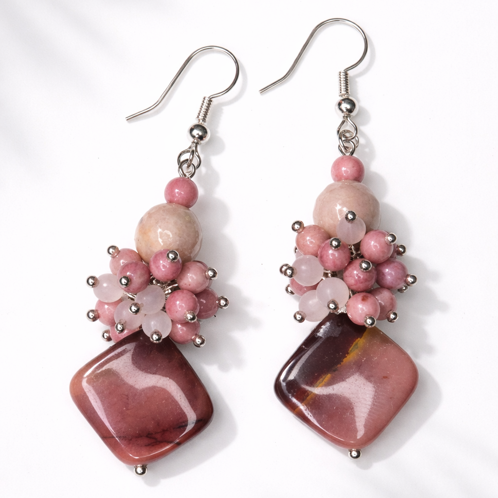 Edelstein Ohrringe - Seelenkompass - Mokait, Mondstein & Rosenquarz