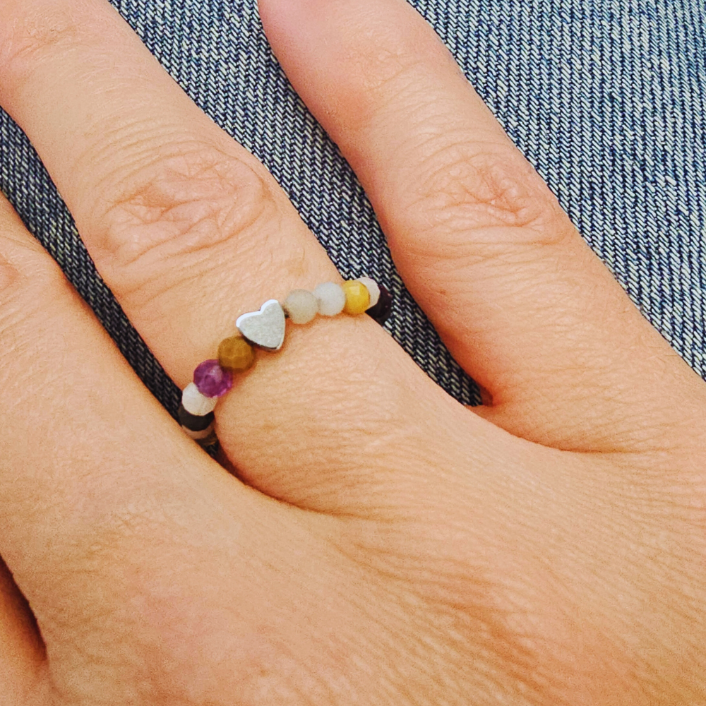 Dieser liebevoll handgefertigte Edelsteinring vereint natürliche Schönheit und symbolische Bedeutung.