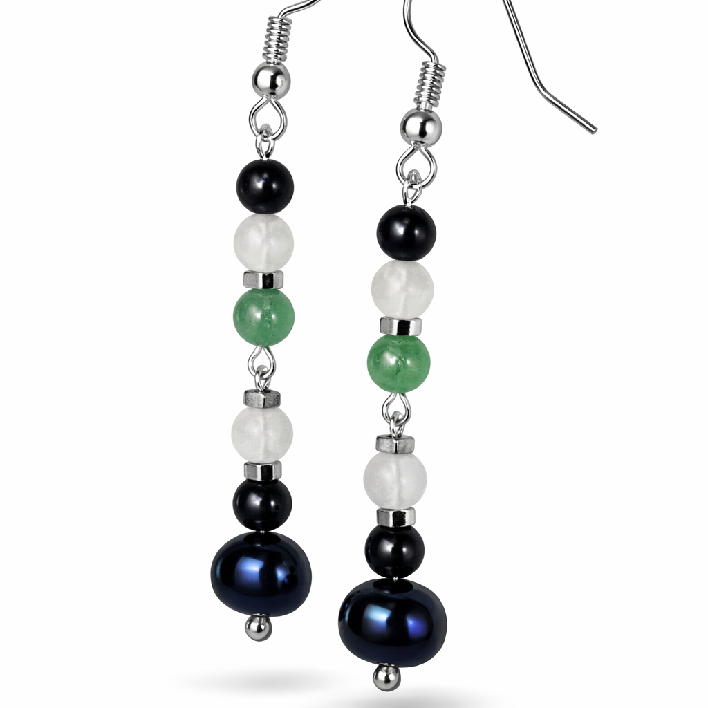 Edelstein Ohrringe - Stella Blue - Süßwasserperlen, Hämatit & Blaufluss