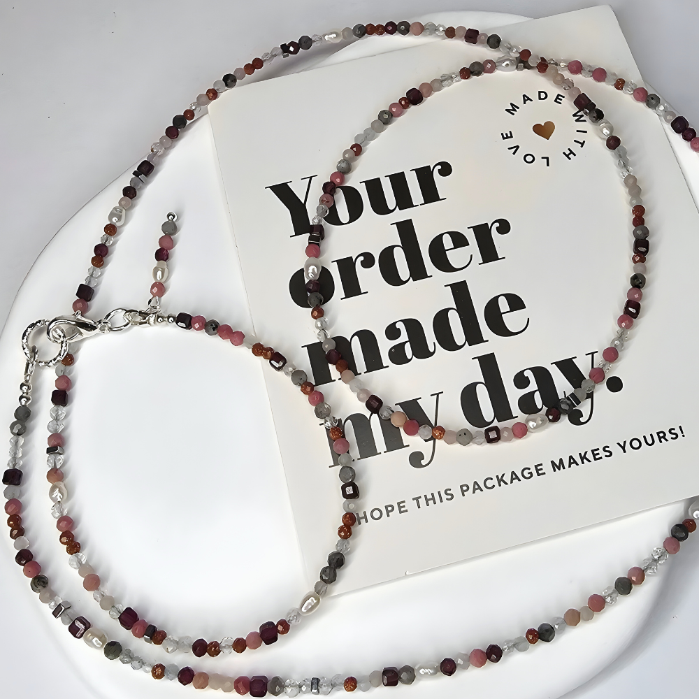 – Gemstone beads: approx. 4–7 mm & 2–3 mm (partially faceted)