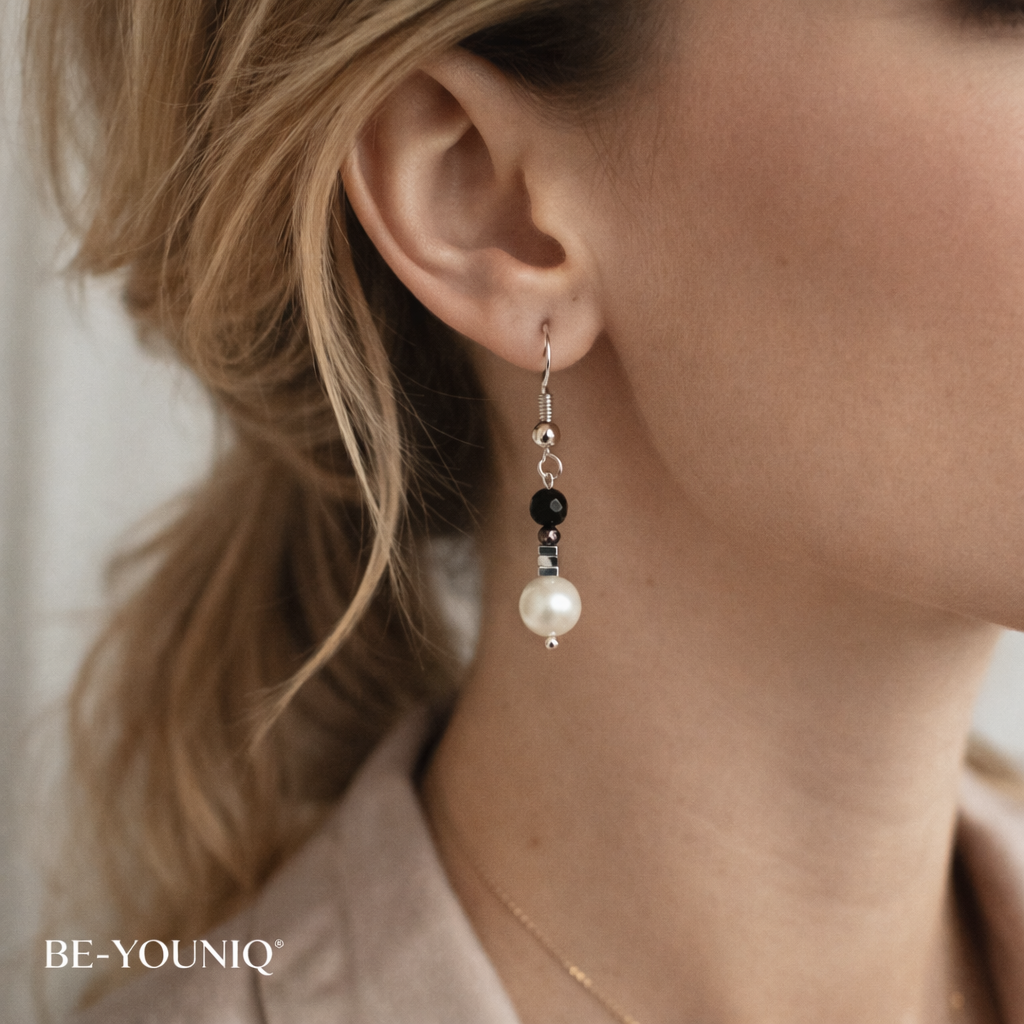 Edelstein Ohrringe - Noctalis - Süßwasserperlen, Hämatit & Onyx